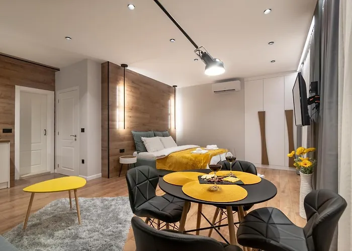 The 35 m^2 Enjoy Studio Apartment is located 10 minutes' drive from Sea Garden and 10 minutes' drive from Naval Museum. Guests can use Wi-Fi and parking, which is available on site.
